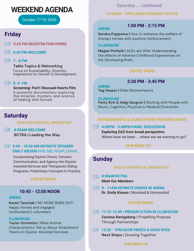 You are invited to join us in Vancouver, BC where we will explore, connect and share how our members are Leading the Way in the field of partnering with horses across BC.